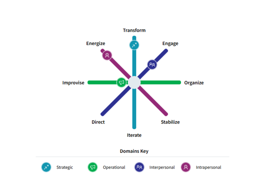 A domain summarises a broad area of multi-dimensional leadership demands which combine to influence a leader’s effectiveness in achieving team and organisational results in a given performance context.