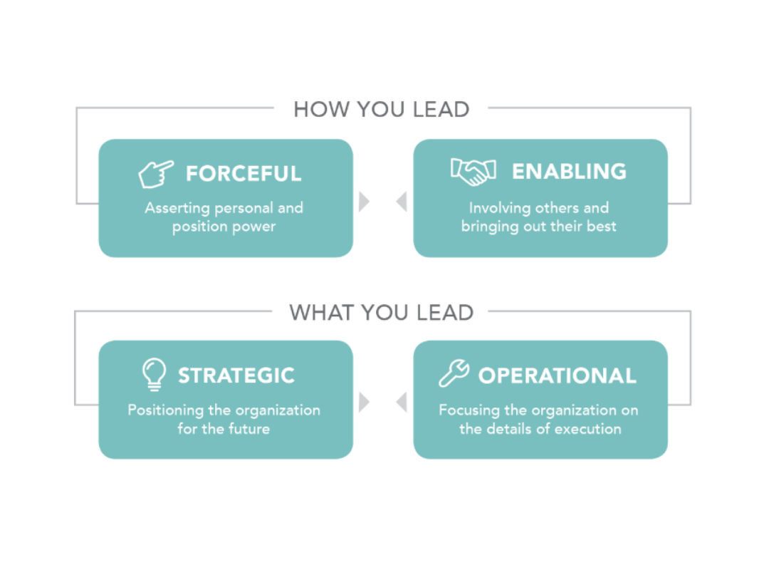 The LVI 360 measures complementary behaviours, which are pairs of leadership styles that work best when balanced. For example: a leader may need to be forceful to drive results but also enabling to engage and motivate their team. Similarly, being strategic helps leaders focus on the big picture, while being operational ensures plans are executed effectively.